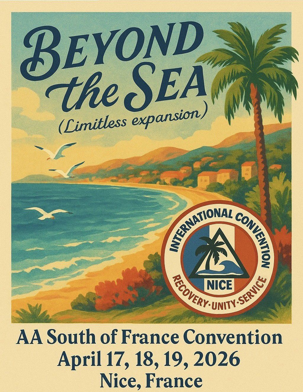 Event Description: AA South of France is excited to be hosting an AA Convention on April 17,18, 19, 2026 in Nice, France. The convention will include a Friday evening reception and speaker meeting, Saturday all day, 20+ meetings, including 2 in French and 2 Al-Anon and a 3-speaker Dinner/Dance in the evening. Sunday morning there will be a Step 11/Meditation meeting on the beach. An International Event!! More information, registration details and accommodation options can be found on the website